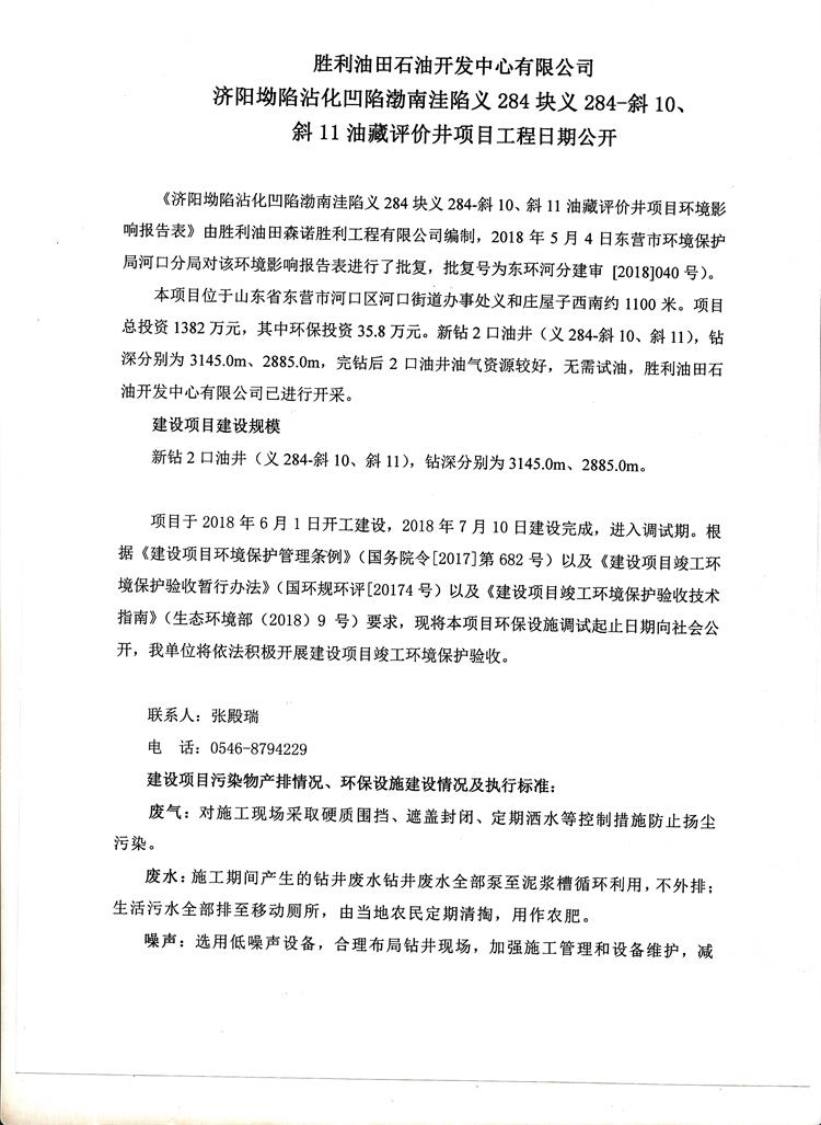 勝利油田石油開發(fā)中心有限公司濟(jì)陽坳陷沾化凹陷渤南洼陷義284塊義284-斜10、斜11油藏評(píng)價(jià)井項(xiàng)目工程日期公開